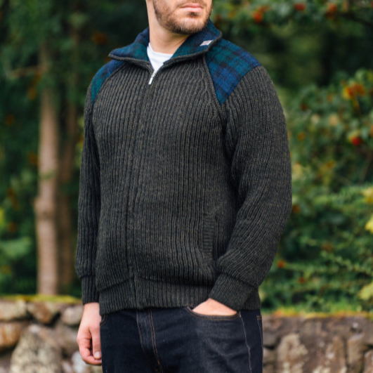 Full Zipped Cardigan with Harris Tweed® Shoulder Patches
